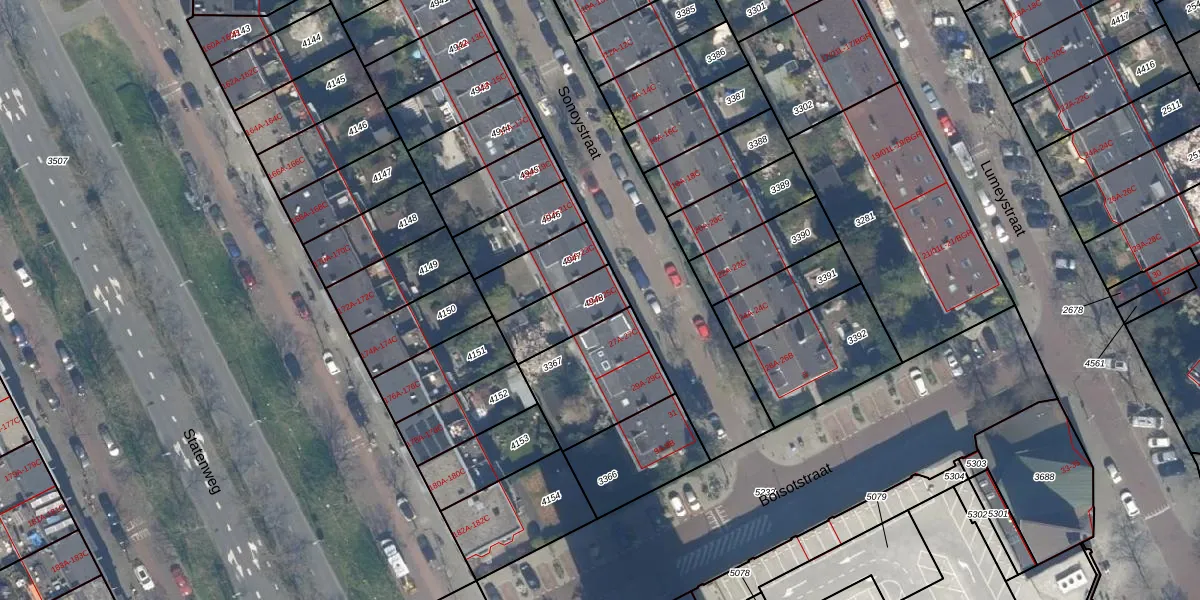 Het perceel waarop Sonoystraat 25-C staat heeft een oppervlakte van 168 m². Dit is een middelgroot perceel. De perceeloppervlakte wordt geregistreerd door het Kadaster. Gedetailleerde informatie over de maten van dit perceel kunt u vinden in het rapport Kadastrale kaart met maatvoering van Sonoystraat 25-C.
