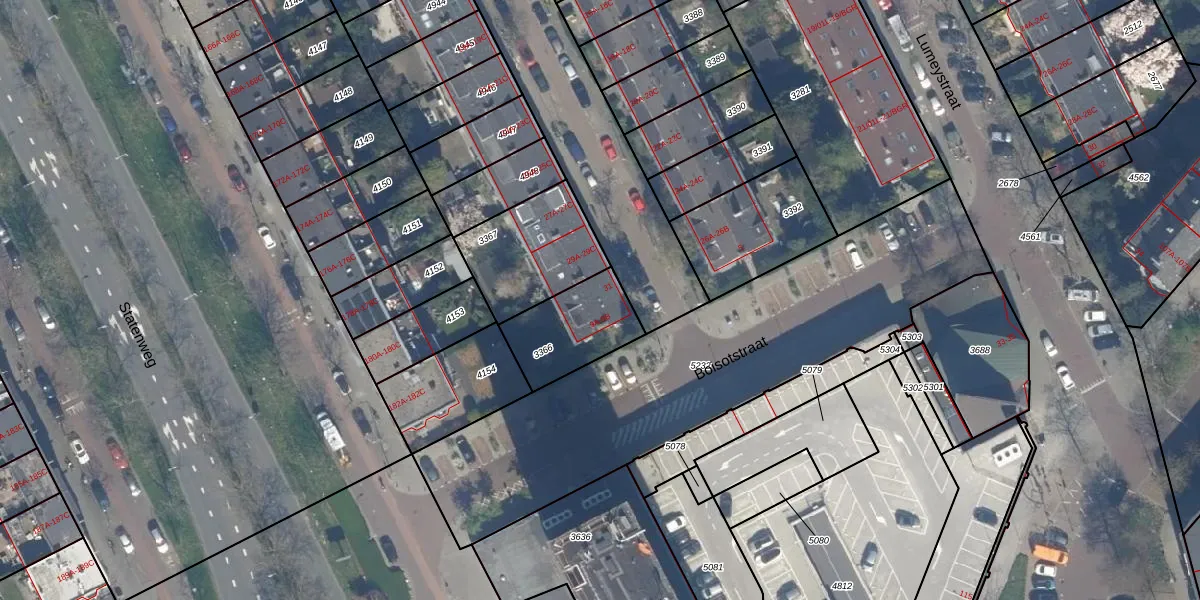 Het adres ligt op het perceel RTD10-Z-3366, dat zich in de kadastrale gemeente Rotterdam bevindt. Het perceel is kleiner dan gemiddeld in Rotterdam. Het perceel is 267 m² groot, terwijl het gemiddelde ligt op 1602,8 m². Het kleinste perceel in de kadastrale gemeente is 0 m² groot. De grootste perceeloppervlakte is 30,3 ha. Op het perceel zijn 3 adressen aanwezig. De laatste wijziging in het de Basisregistratie Kadaster (BRK) was op 18-11-2002.