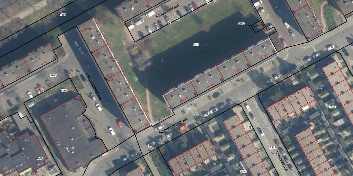 Het perceel waarop Sophoclesstraat 155 staat heeft een oppervlakte van 1,3 ha. Dit is een zeer groot perceel. De perceeloppervlakte wordt geregistreerd door het Kadaster. Gedetailleerde informatie over de maten van dit perceel kunt u vinden in het rapport Kadastrale kaart met maatvoering van Sophoclesstraat 155.