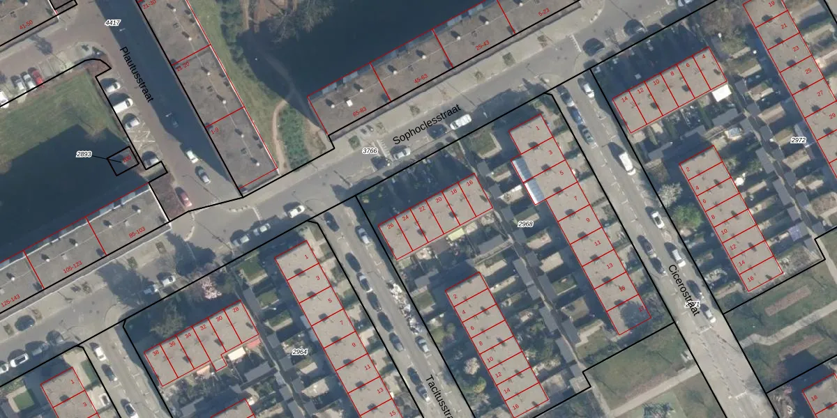 Het perceel waarop Sophoclesstraat 22 staat heeft een oppervlakte van 3432 m². Dit is een zeer groot perceel. De perceeloppervlakte wordt geregistreerd door het Kadaster. Gedetailleerde informatie over de maten van dit perceel kunt u vinden in het rapport Kadastrale kaart met maatvoering van Sophoclesstraat 22.