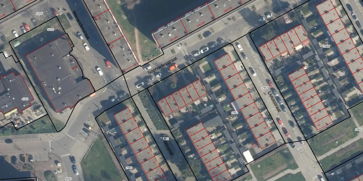 Het perceel waarop Sophoclesstraat 44 staat heeft een oppervlakte van 3428 m². Dit is een zeer groot perceel. De perceeloppervlakte wordt geregistreerd door het Kadaster. Gedetailleerde informatie over de maten van dit perceel kunt u vinden in het rapport Kadastrale kaart met maatvoering van Sophoclesstraat 44.