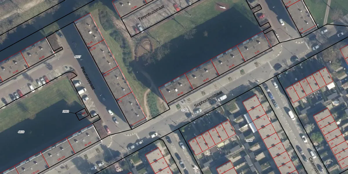 Het perceel waarop Sophoclesstraat 67 staat heeft een oppervlakte van 1,3 ha. Dit is een zeer groot perceel. De perceeloppervlakte wordt geregistreerd door het Kadaster. Gedetailleerde informatie over de maten van dit perceel kunt u vinden in het rapport Kadastrale kaart met maatvoering van Sophoclesstraat 67.
