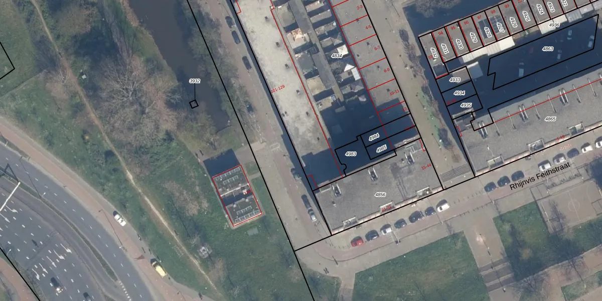 Het adres ligt op het perceel RTD10-Z-4834, dat zich in de kadastrale gemeente Rotterdam bevindt. Het perceel is met 2575 m² relatief groot. Het gemiddelde ligt in de kadastrale gemeente Rotterdam op 1601,7 m². Het grootste perceel in de kadastrale gemeente is 30,3 ha. Het kleinste perceel heeft een oppervlakte van 0 m². Er zijn 46 adressen aanwezig op het perceel. De laatste wijziging in het de Basisregistratie Kadaster (BRK) was op 02-05-2005.