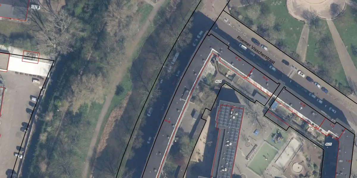 Het adres ligt op het perceel RTD10-Z-4624, dat zich in de kadastrale gemeente Rotterdam bevindt. De gemiddelde perceeloppervlakte in de kadastrale gemeente Rotterdam is 1601,7 m². Dit perceel is met zijn 2705 m² dus groter dan gemiddeld. De grootste perceeloppervlakte in de kadastrale gemeente is 30,3 ha. De kleinste oppervlakte bedraagt 0 m². Op het perceel liggen in totaal 55 adressen. De laatste wijziging in het de Basisregistratie Kadaster (BRK) was op 21-01-2003.