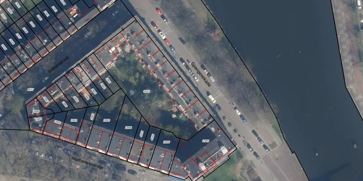 Spangesekade 110-A is gelegen op kadastraal perceel RTD10Z3543. Deze kadastrale aanduiding is uniek en wordt gebruikt door het Kadaster om eigendomsrechten en andere zakelijke rechten vast te leggen. Het perceel maakt onderdeel uit van de kadastrale gemeente Rotterdam.