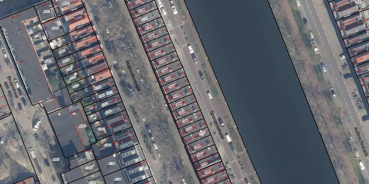 Spangesekade 165 is gelegen op kadastraal perceel DHV00H3748. Deze kadastrale aanduiding is uniek en wordt gebruikt door het Kadaster om eigendomsrechten en andere zakelijke rechten vast te leggen. Het perceel maakt onderdeel uit van de kadastrale gemeente Delfshaven.