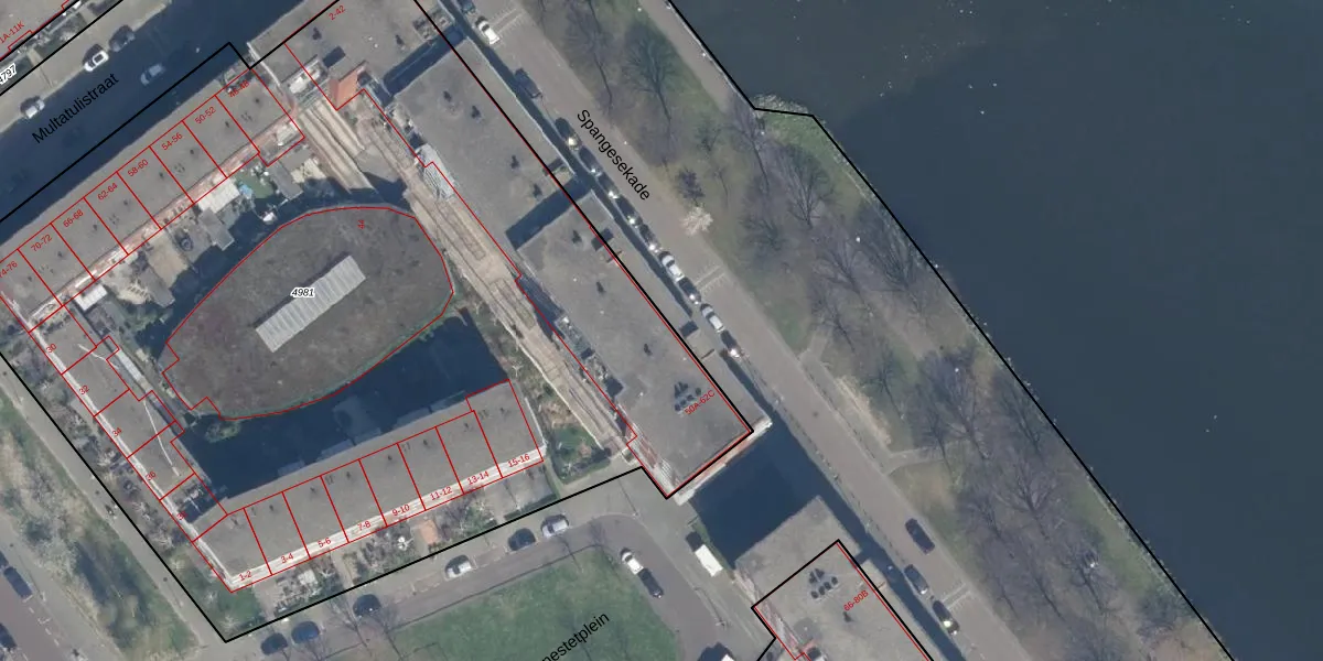 Spangesekade 53-E is gelegen op kadastraal perceel RTD10Z4981. Deze kadastrale aanduiding is uniek en wordt gebruikt door het Kadaster om eigendomsrechten en andere zakelijke rechten vast te leggen. Het perceel maakt onderdeel uit van de kadastrale gemeente Rotterdam.