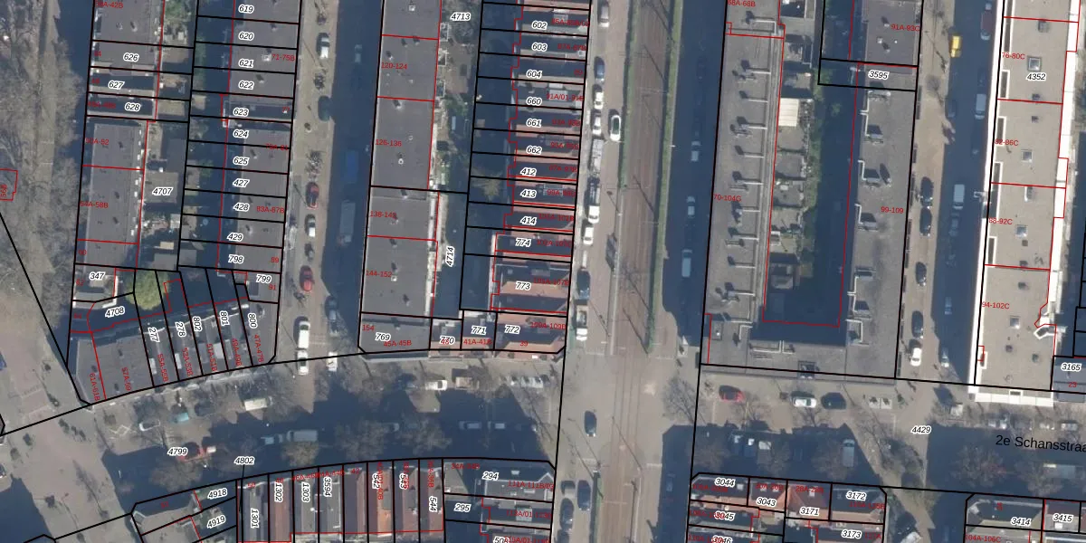 Het adres ligt op het perceel DHV00-H-773, dat zich in de kadastrale gemeente Delfshaven bevindt. De gemiddelde perceelgrootte in Delfshaven is 628,89 m². Dit perceel is kleiner: de perceeloppervlakte bedraagt 208 m². Het kleinste perceel in de kadastrale gemeente is 0 m² groot. De grootste perceeloppervlakte is 22,2 ha. Op het perceel zijn 5 adressen aanwezig. De huidige grenzen van het perceel zijn digitaal in de Basisregistratie Kadaster (BRK) geregistreerd op 13-03-2003.