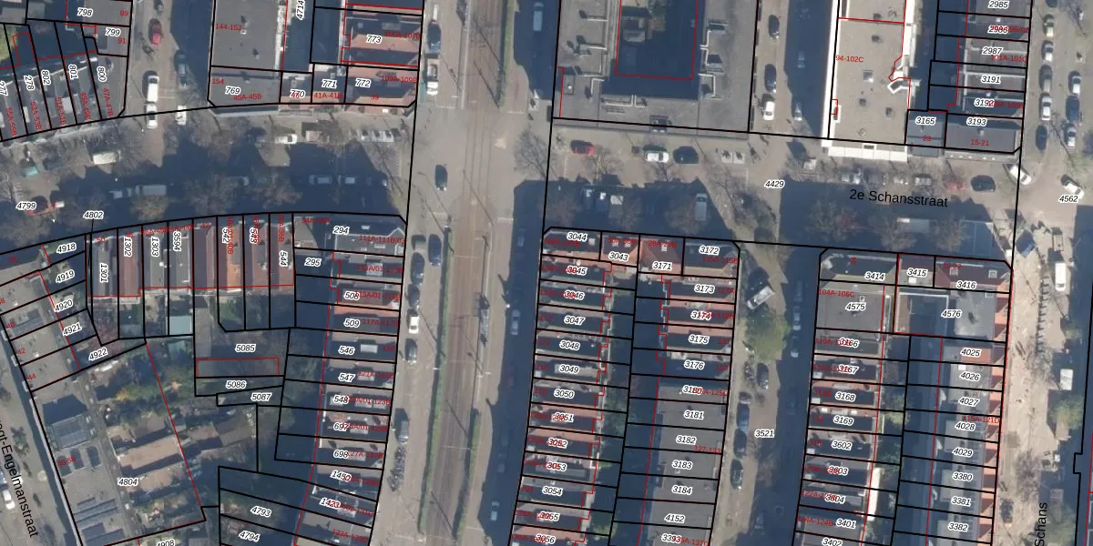 Het adres ligt op het perceel DHV00-A-3045, dat zich in de kadastrale gemeente Delfshaven bevindt. De gemiddelde perceelgrootte in Delfshaven is 628,89 m². Dit perceel is kleiner: de perceeloppervlakte bedraagt 82 m². Het kleinste perceel in de kadastrale gemeente is 0 m² groot. De grootste perceeloppervlakte is 22,2 ha. Op het perceel liggen in totaal 2 adressen. De huidige grenzen van het perceel zijn digitaal in de Basisregistratie Kadaster (BRK) geregistreerd op 13-03-2003.