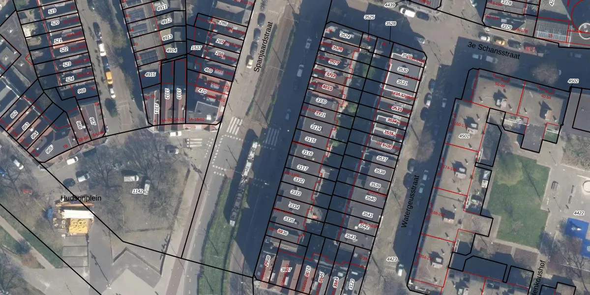 Spanjaardstraat 156 is gelegen op kadastraal perceel DHV00A3116. Deze kadastrale aanduiding is uniek en wordt gebruikt door het Kadaster om eigendomsrechten en andere zakelijke rechten vast te leggen. Het perceel maakt onderdeel uit van de kadastrale gemeente Delfshaven.