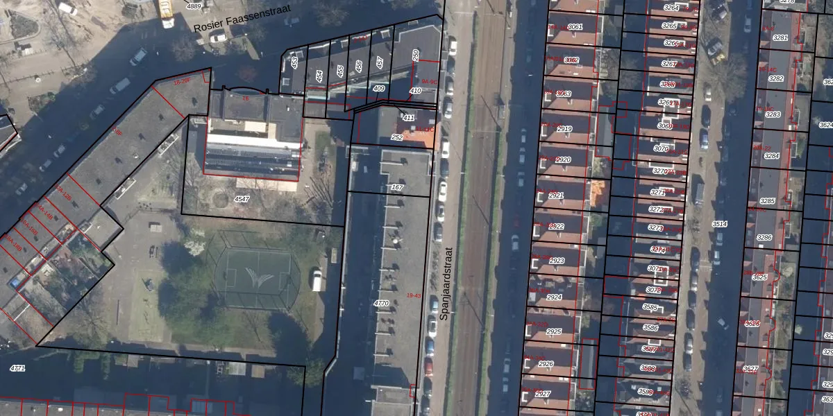 Spanjaardstraat 21 is gelegen op kadastraal perceel DHV00H4770. Deze kadastrale aanduiding is uniek en wordt gebruikt door het Kadaster om eigendomsrechten en andere zakelijke rechten vast te leggen. Het perceel maakt onderdeel uit van de kadastrale gemeente Delfshaven.