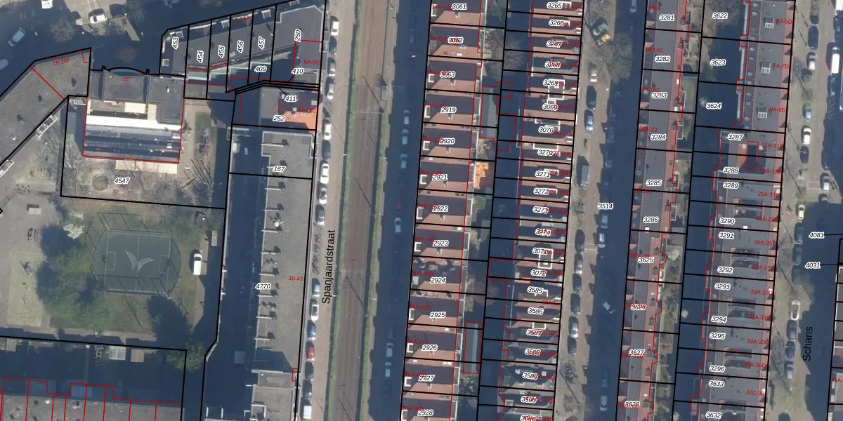 Het perceel waarop Spanjaardstraat 26-D staat heeft een oppervlakte van 144 m². Dit is een middelgroot perceel. De perceeloppervlakte wordt geregistreerd door het Kadaster. Gedetailleerde informatie over de maten van dit perceel kunt u vinden in het rapport Kadastrale kaart met maatvoering van Spanjaardstraat 26-D.