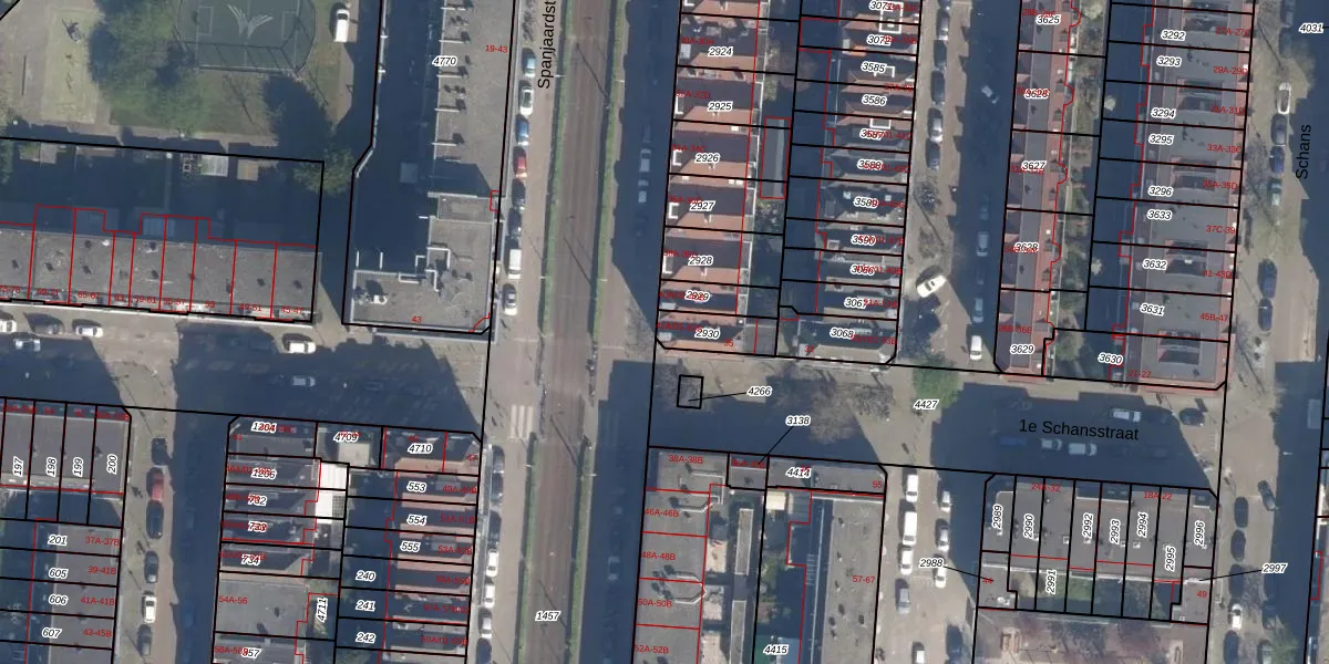 Het perceel waarop Spanjaardstraat 42-B staat heeft een oppervlakte van 89 m². Dit is een klein perceel. De perceeloppervlakte wordt geregistreerd door het Kadaster. Gedetailleerde informatie over de maten van dit perceel kunt u vinden in het rapport Kadastrale kaart met maatvoering van Spanjaardstraat 42-B.