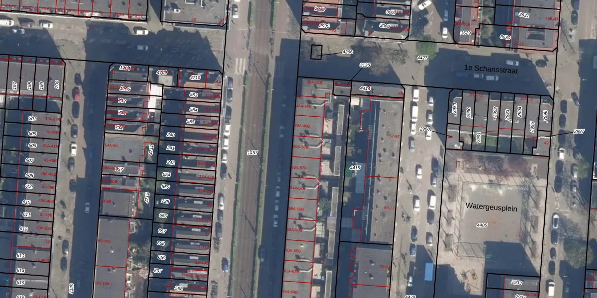 Het adres is gelegen op perceel 4426 in de sectie A en de kadastrale gemeente Delfshaven. De kadastrale aanduiding is aldus DHV00-A-4426. De gemiddelde perceeloppervlakte in de kadastrale gemeente Delfshaven is 628,89 m². Dit perceel is met zijn 3681 m² dus groter dan gemiddeld. De grootste perceeloppervlakte in de kadastrale gemeente is 22,2 ha. De kleinste oppervlakte bedraagt 0 m². Op het perceel liggen in totaal 77 adressen. In de Basisregistratie Kadaster (BRK) werden de grenzen van het perceel geregistreerd op 26-08-2004.