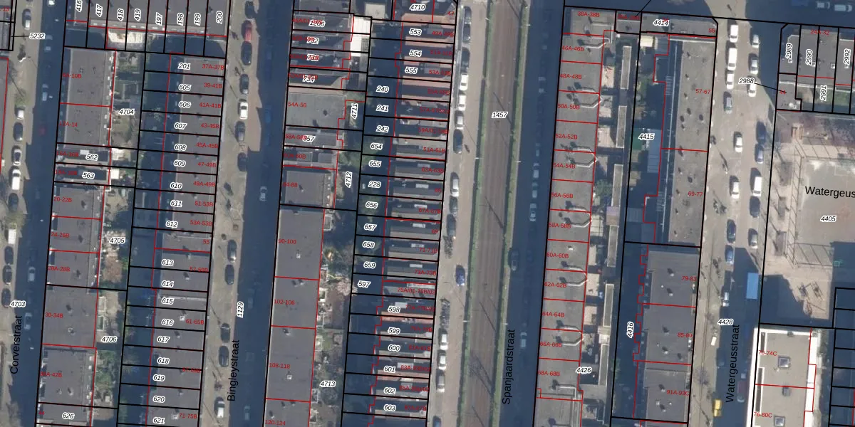 Het perceel waarop Spanjaardstraat 67-A staat heeft een oppervlakte van 88 m². Dit is een klein perceel. De perceeloppervlakte wordt geregistreerd door het Kadaster. Gedetailleerde informatie over de maten van dit perceel kunt u vinden in het rapport Kadastrale kaart met maatvoering van Spanjaardstraat 67-A.