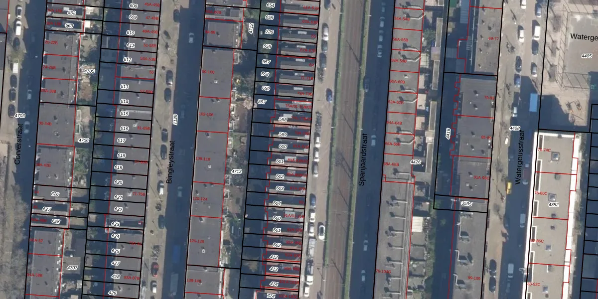 Het perceel waarop Spanjaardstraat 81-A staat heeft een oppervlakte van 92 m². Dit is een klein perceel. De perceeloppervlakte wordt geregistreerd door het Kadaster. Gedetailleerde informatie over de maten van dit perceel kunt u vinden in het rapport Kadastrale kaart met maatvoering van Spanjaardstraat 81-A.