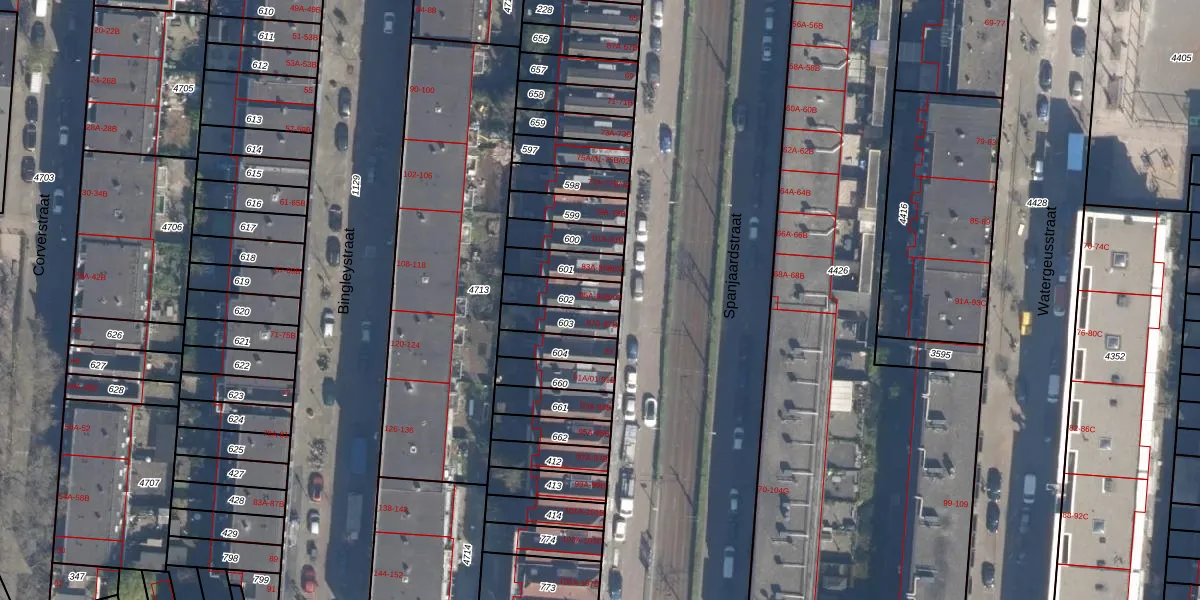 Spanjaardstraat 85-A is gelegen op kadastraal perceel DHV00H602. Deze kadastrale aanduiding is uniek en wordt gebruikt door het Kadaster om eigendomsrechten en andere zakelijke rechten vast te leggen. Het perceel maakt onderdeel uit van de kadastrale gemeente Delfshaven.