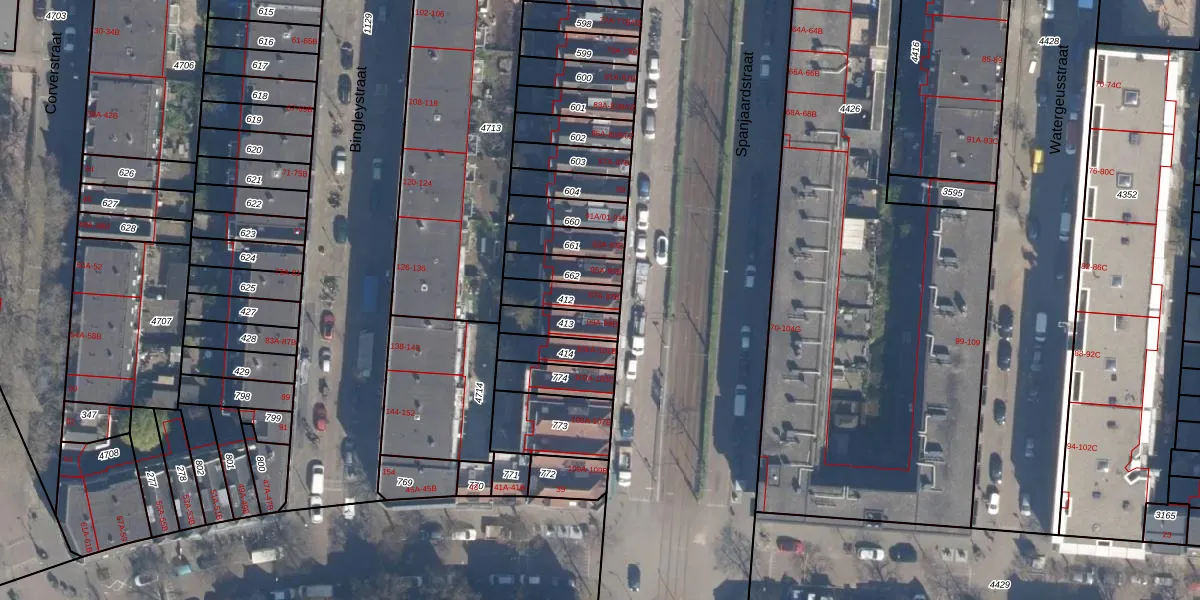 Spanjaardstraat 97-B is gelegen op kadastraal perceel DHV00H412. Deze kadastrale aanduiding is uniek en wordt gebruikt door het Kadaster om eigendomsrechten en andere zakelijke rechten vast te leggen. Het perceel maakt onderdeel uit van de kadastrale gemeente Delfshaven.