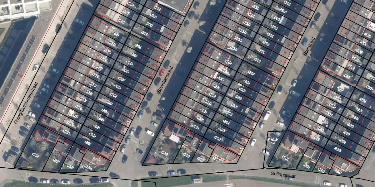 Gebruik de zoekbalk of klik op een perceel voor informatie over de adressen binnen dit perceel.