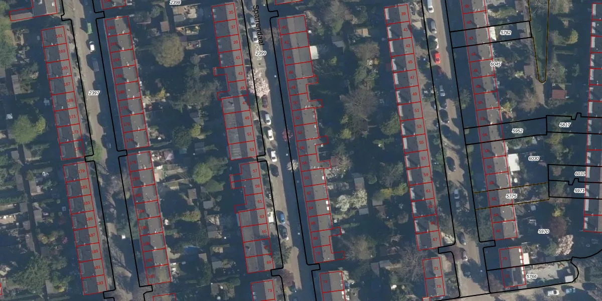 Sparrendaal 56 is gelegen op kadastraal perceel RTD05V2400. Deze kadastrale aanduiding is uniek en wordt gebruikt door het Kadaster om eigendomsrechten en andere zakelijke rechten vast te leggen. Het perceel maakt onderdeel uit van de kadastrale gemeente Rotterdam.