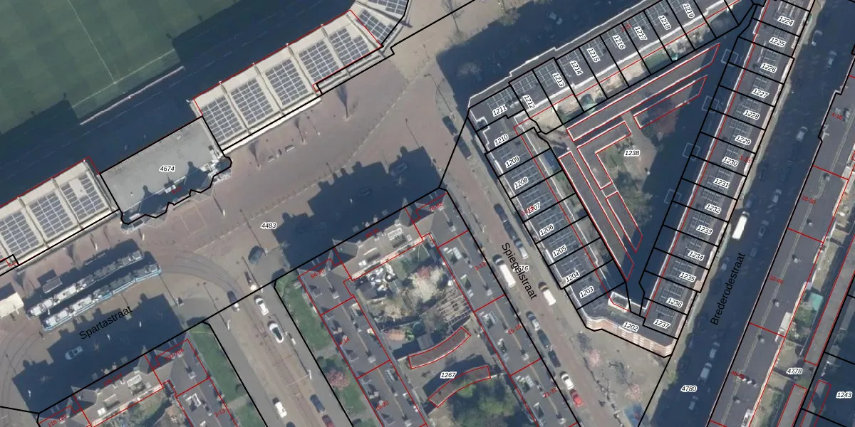 Het perceel waarop Spartastraat 78 staat heeft een oppervlakte van 3745 m². Dit is een zeer groot perceel. De perceeloppervlakte wordt geregistreerd door het Kadaster. Gedetailleerde informatie over de maten van dit perceel kunt u vinden in het rapport Kadastrale kaart met maatvoering van Spartastraat 78.