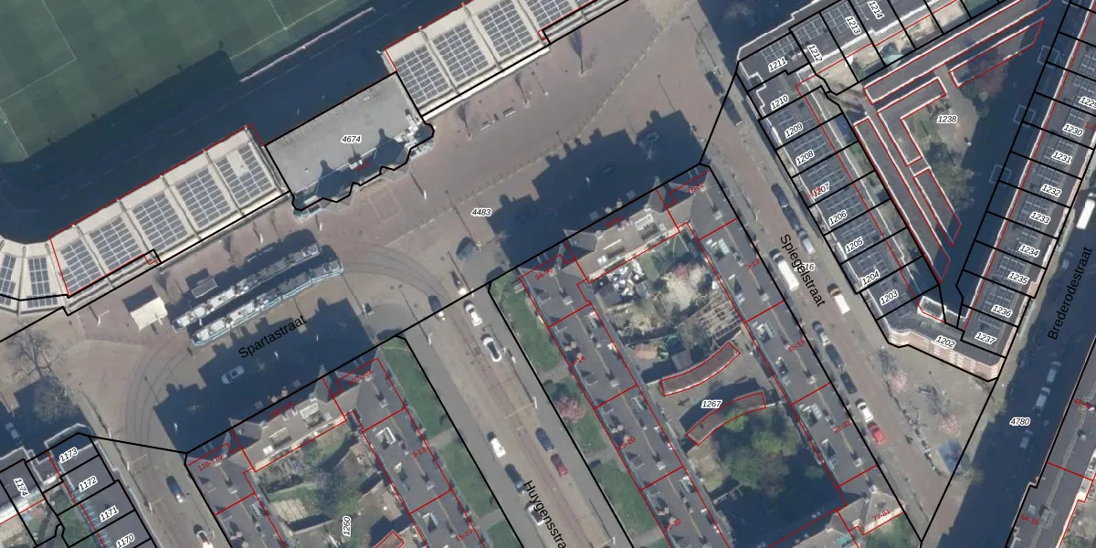 Het perceel waarop Spartastraat 94 staat heeft een oppervlakte van 3745 m². Dit is een zeer groot perceel. De perceeloppervlakte wordt geregistreerd door het Kadaster. Gedetailleerde informatie over de maten van dit perceel kunt u vinden in het rapport Kadastrale kaart met maatvoering van Spartastraat 94.