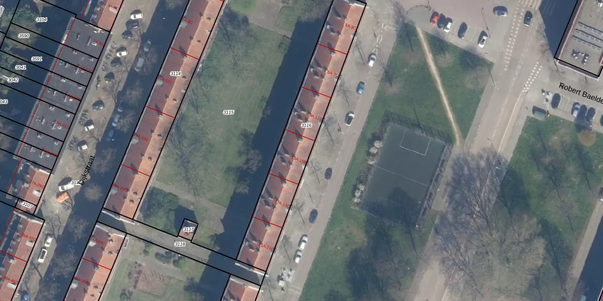 Speelmanstraat 13-A is gelegen op kadastraal perceel KLG00F3116. Deze kadastrale aanduiding is uniek en wordt gebruikt door het Kadaster om eigendomsrechten en andere zakelijke rechten vast te leggen. Het perceel maakt onderdeel uit van de kadastrale gemeente Kralingen.