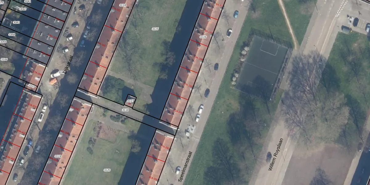 Speelmanstraat 19-B is gelegen op kadastraal perceel KLG00F3116. Deze kadastrale aanduiding is uniek en wordt gebruikt door het Kadaster om eigendomsrechten en andere zakelijke rechten vast te leggen. Het perceel maakt onderdeel uit van de kadastrale gemeente Kralingen.