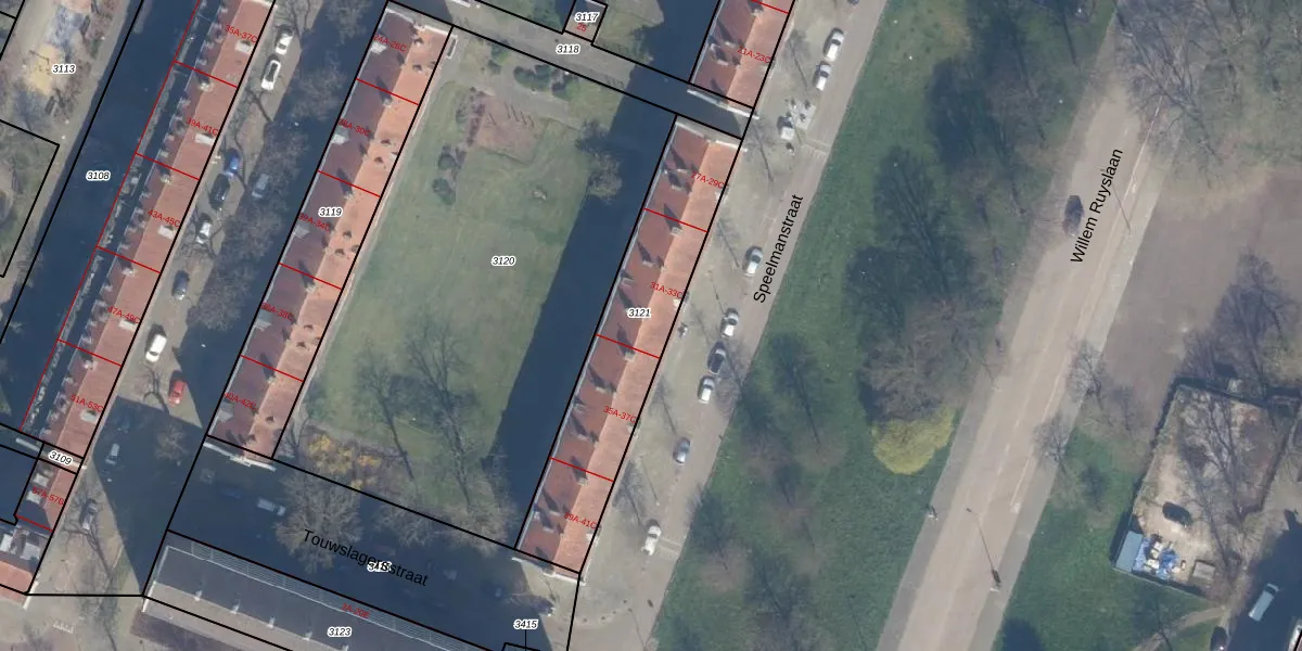 Speelmanstraat 33-B is gelegen op kadastraal perceel KLG00F3121. Deze kadastrale aanduiding is uniek en wordt gebruikt door het Kadaster om eigendomsrechten en andere zakelijke rechten vast te leggen. Het perceel maakt onderdeel uit van de kadastrale gemeente Kralingen.