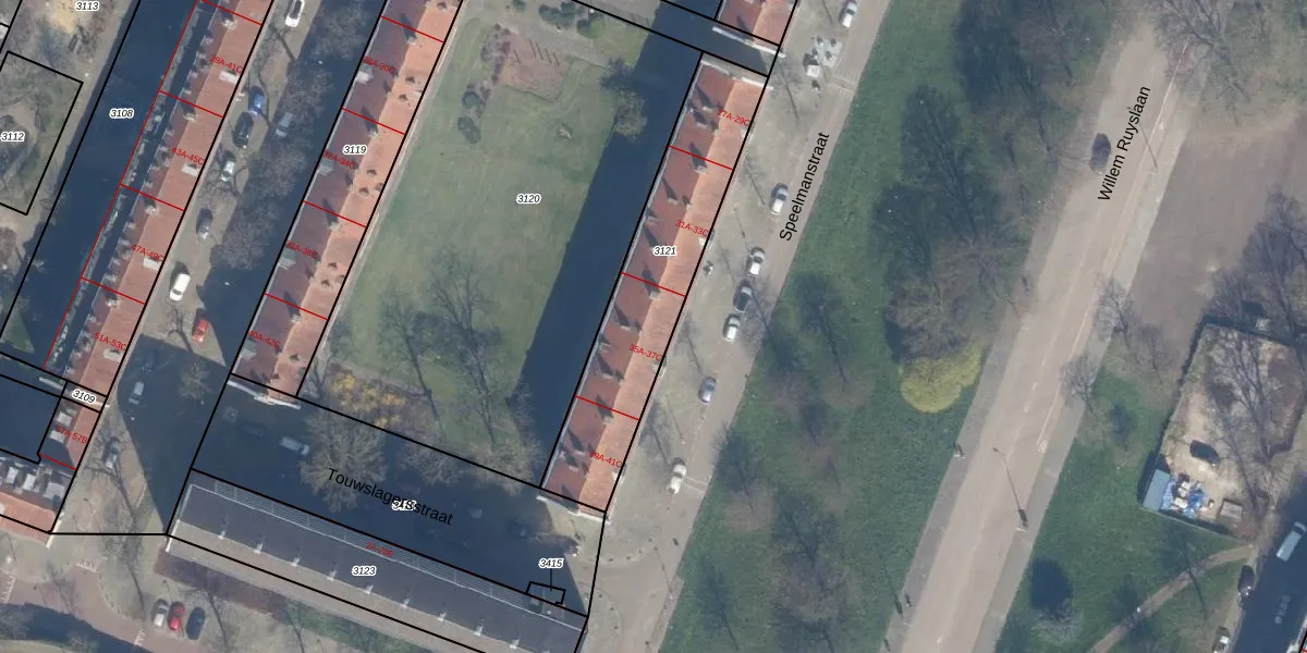 Speelmanstraat 35-A is gelegen op kadastraal perceel KLG00F3121. Deze kadastrale aanduiding is uniek en wordt gebruikt door het Kadaster om eigendomsrechten en andere zakelijke rechten vast te leggen. Het perceel maakt onderdeel uit van de kadastrale gemeente Kralingen.