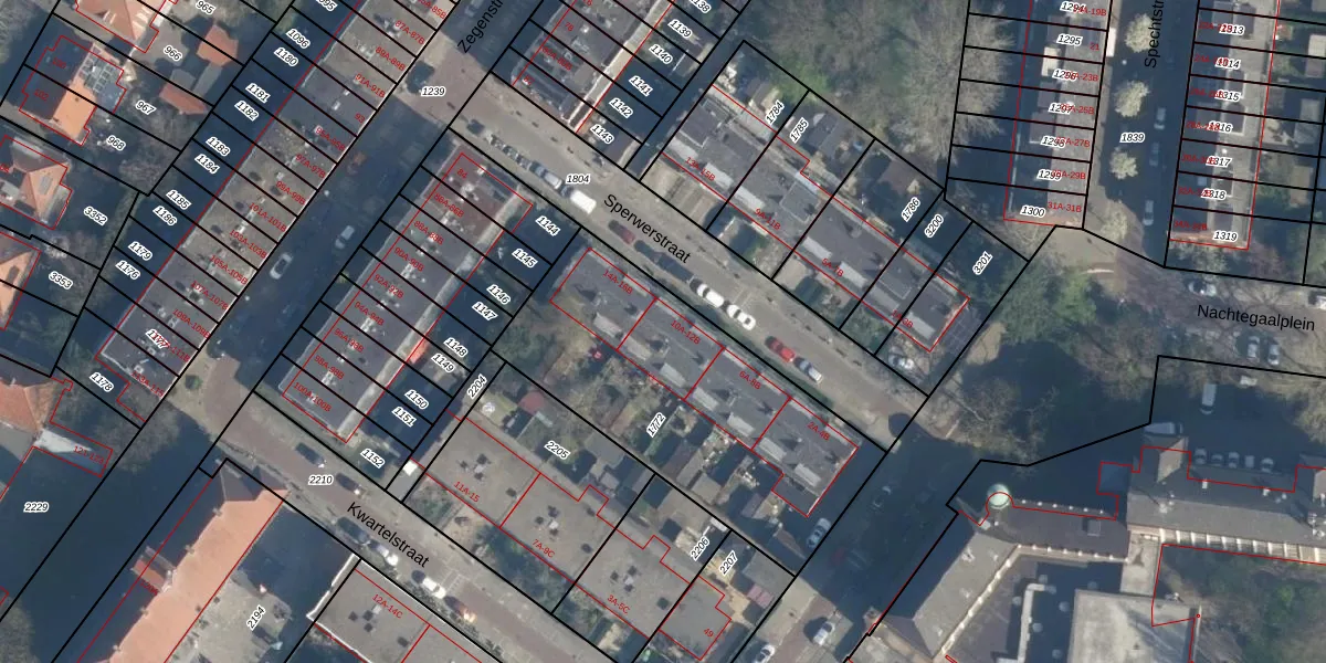 Sperwerstraat 12-B is gelegen op kadastraal perceel CLS00H1772. Deze kadastrale aanduiding is uniek en wordt gebruikt door het Kadaster om eigendomsrechten en andere zakelijke rechten vast te leggen. Het perceel maakt onderdeel uit van de kadastrale gemeente Charlois.