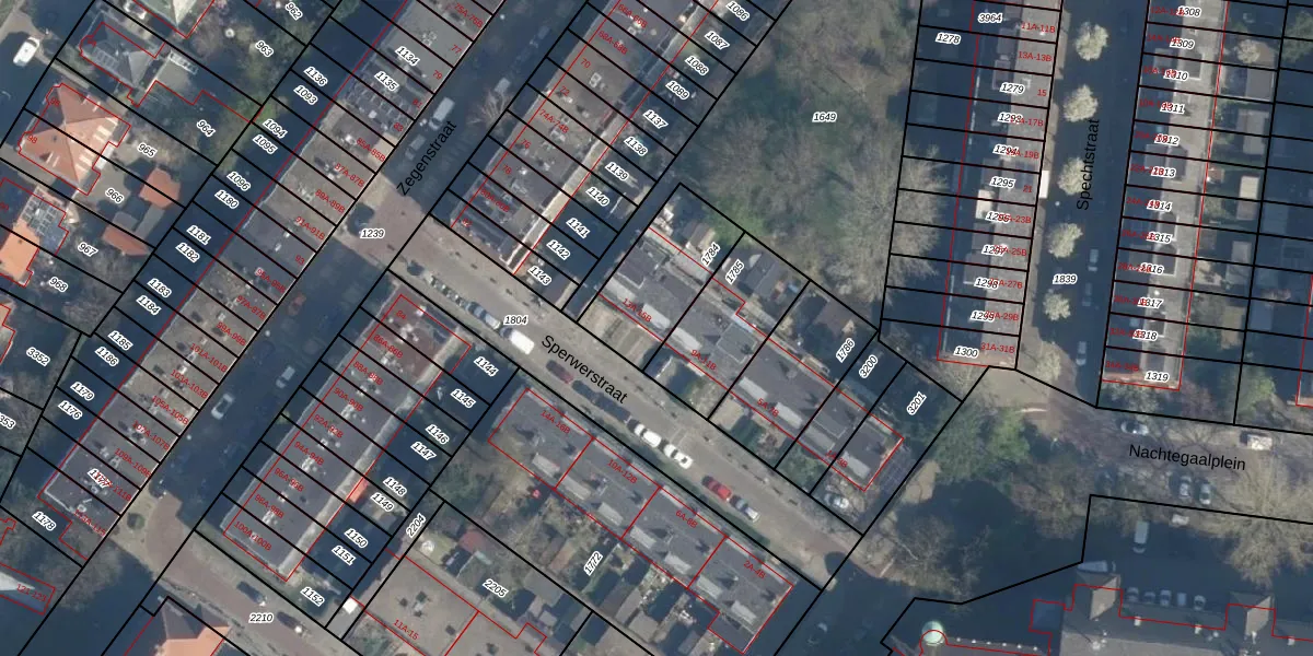 Sperwerstraat 13-B is gelegen op kadastraal perceel CLS00H1784. Deze kadastrale aanduiding is uniek en wordt gebruikt door het Kadaster om eigendomsrechten en andere zakelijke rechten vast te leggen. Het perceel maakt onderdeel uit van de kadastrale gemeente Charlois.