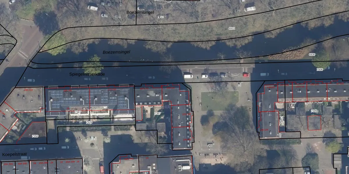 Het perceel waarop het adres ligt is RTD07-R-7357. De afkorting 'RTD07' staat voor kadastrale gemeente Rotterdam. De oppervlakte van het perceel is 1067 m². Dat is groter dan gemiddeld in Rotterdam, waar de gemiddelde perceeloppervlakte op 506,86 m² ligt. De grootste perceeloppervlakte in de kadastrale gemeente is 10,8 ha. De kleinste oppervlakte bedraagt 0 m². Op het perceel liggen in totaal 29 adressen. De huidige grenzen van het perceel zijn digitaal in de Basisregistratie Kadaster (BRK) geregistreerd op 21-12-2004.