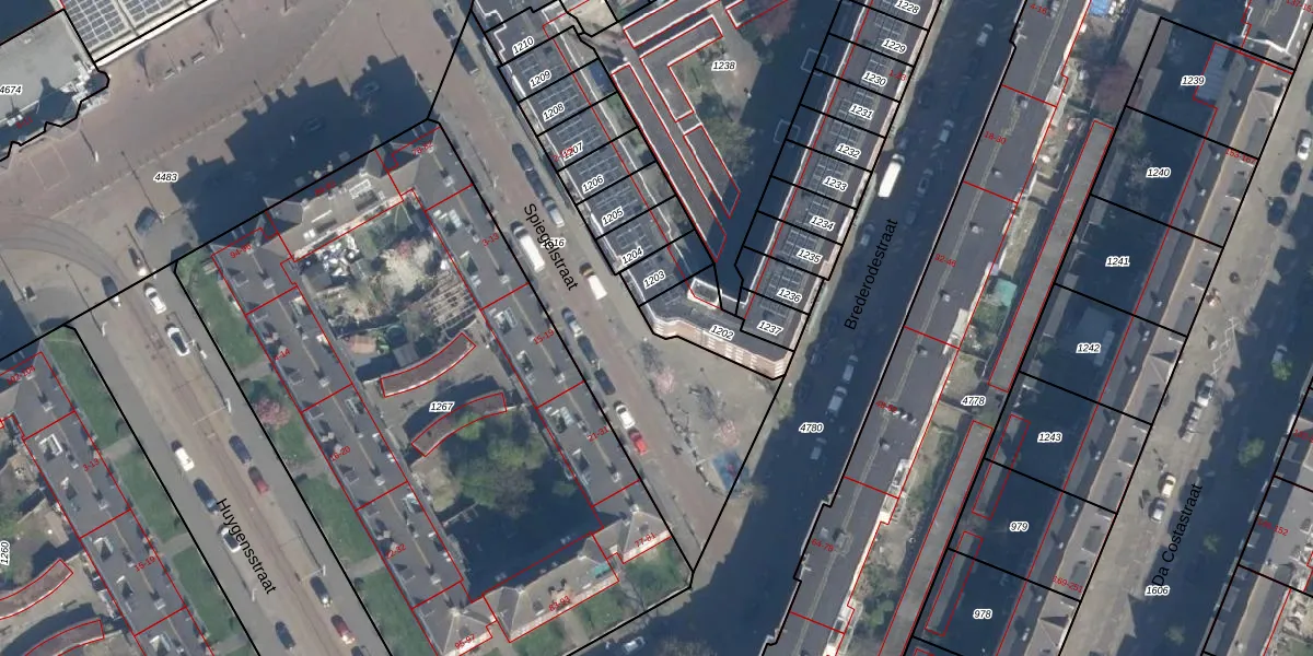 Het perceel waarop Spiegelstraat 46 staat heeft een oppervlakte van 167 m². Dit is een middelgroot perceel. De perceeloppervlakte wordt geregistreerd door het Kadaster. Gedetailleerde informatie over de maten van dit perceel kunt u vinden in het rapport Kadastrale kaart met maatvoering van Spiegelstraat 46.
