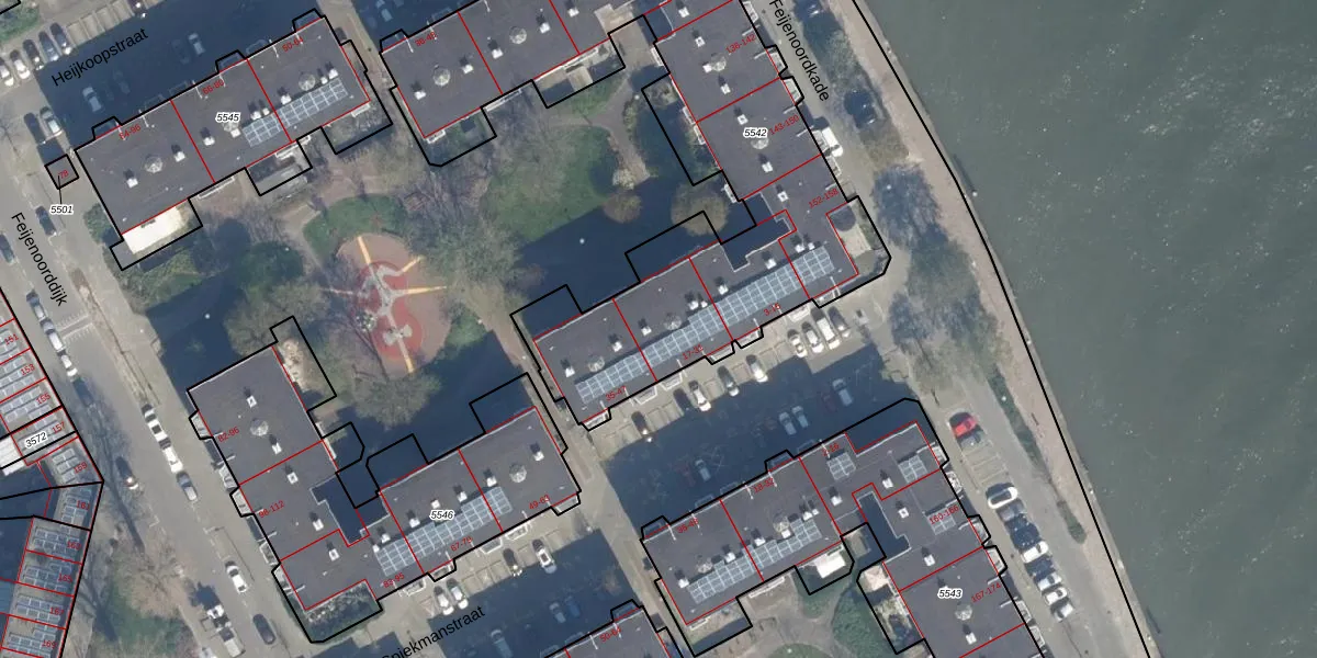 Het perceel waarop het adres ligt is RTD05-Q-5542. De afkorting 'RTD05' staat voor kadastrale gemeente Rotterdam. De gemiddelde perceeloppervlakte in de kadastrale gemeente Rotterdam is 1401,79 m². Dit perceel is met zijn 2469 m² dus groter dan gemiddeld. Het kleinste perceel in de kadastrale gemeente is 0 m² groot. De grootste perceeloppervlakte is 36,8 ha. Er zijn 70 adressen aanwezig op het perceel. De huidige grenzen van het perceel zijn digitaal in de Basisregistratie Kadaster (BRK) geregistreerd op 12-08-2003.
