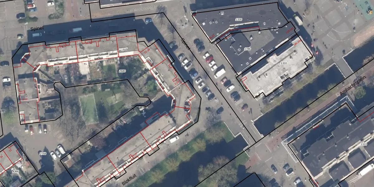 Het perceel waarop Spinet 2 staat heeft een oppervlakte van 4425 m². Dit is een zeer groot perceel. De perceeloppervlakte wordt geregistreerd door het Kadaster. Gedetailleerde informatie over de maten van dit perceel kunt u vinden in het rapport Kadastrale kaart met maatvoering van Spinet 2.