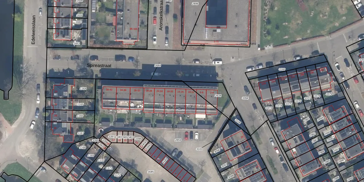 Het perceel waarop Spireastraat 14 staat heeft een oppervlakte van 3289 m². Dit is een zeer groot perceel. De perceeloppervlakte wordt geregistreerd door het Kadaster. Gedetailleerde informatie over de maten van dit perceel kunt u vinden in het rapport Kadastrale kaart met maatvoering van Spireastraat 14.