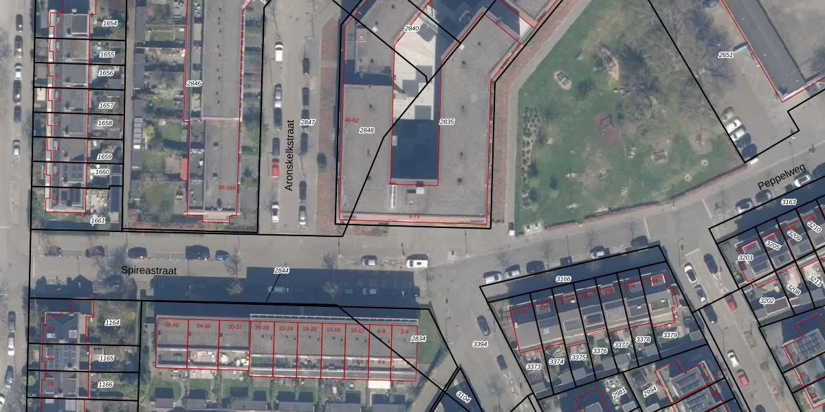 Het perceel waarop Spireastraat 43 staat heeft een oppervlakte van 1577 m². Dit is een zeer groot perceel. De perceeloppervlakte wordt geregistreerd door het Kadaster. Gedetailleerde informatie over de maten van dit perceel kunt u vinden in het rapport Kadastrale kaart met maatvoering van Spireastraat 43.