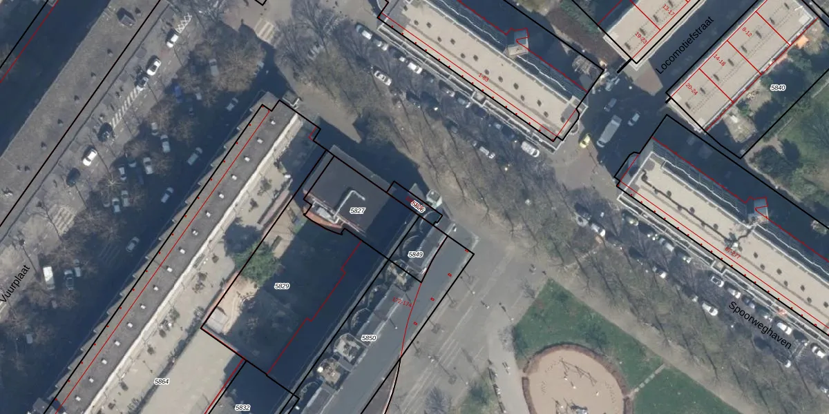 Het perceel waarop Spoorweghaven 106 staat heeft een oppervlakte van 47 m². Dit is een klein perceel. De perceeloppervlakte wordt geregistreerd door het Kadaster. Gedetailleerde informatie over de maten van dit perceel kunt u vinden in het rapport Kadastrale kaart met maatvoering van Spoorweghaven 106.