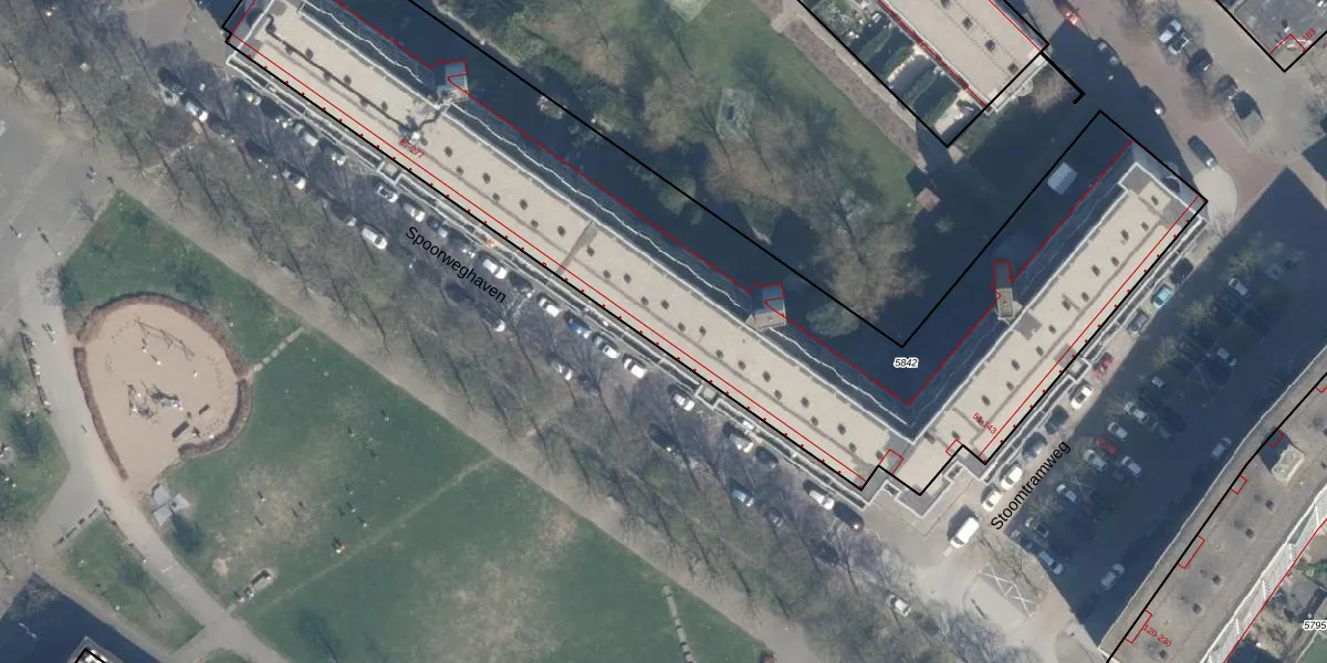 Het perceel waarop Spoorweghaven 187 staat heeft een oppervlakte van 3695 m². Dit is een zeer groot perceel. De perceeloppervlakte wordt geregistreerd door het Kadaster. Gedetailleerde informatie over de maten van dit perceel kunt u vinden in het rapport Kadastrale kaart met maatvoering van Spoorweghaven 187.