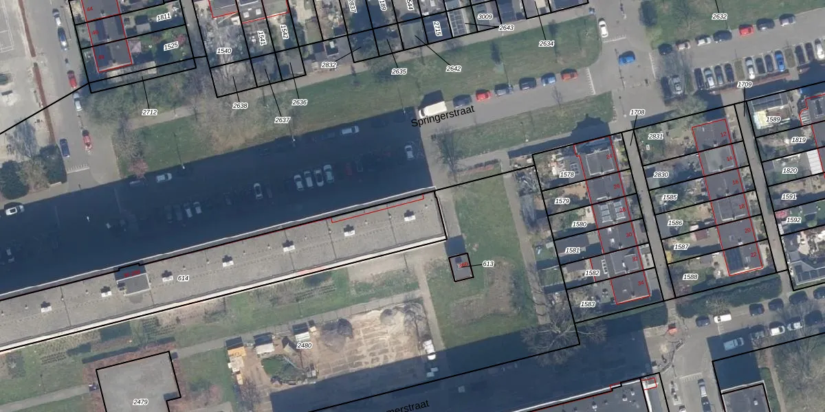 Springerstraat 48 is gelegen op kadastraal perceel KLG00K614. Deze kadastrale aanduiding is uniek en wordt gebruikt door het Kadaster om eigendomsrechten en andere zakelijke rechten vast te leggen. Het perceel maakt onderdeel uit van de kadastrale gemeente Kralingen.