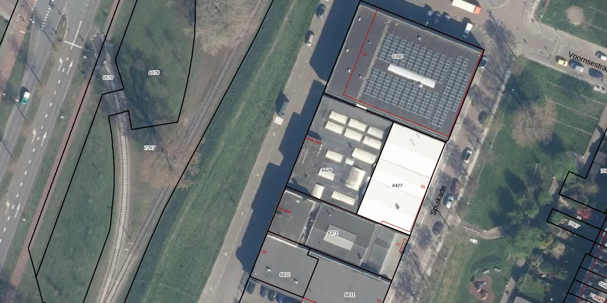 Het perceel waarop Spuikade 25 staat heeft een oppervlakte van 825 m². Dit is een groot perceel. De perceeloppervlakte wordt geregistreerd door het Kadaster. Gedetailleerde informatie over de maten van dit perceel kunt u vinden in het rapport Kadastrale kaart met maatvoering van Spuikade 25.