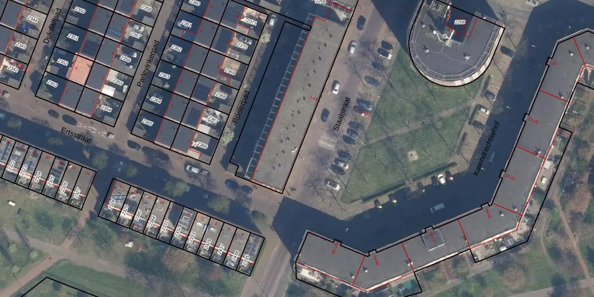 Het perceel waarop Staalstraat 15 staat heeft een oppervlakte van 2310 m². Dit is een zeer groot perceel. De perceeloppervlakte wordt geregistreerd door het Kadaster. Gedetailleerde informatie over de maten van dit perceel kunt u vinden in het rapport Kadastrale kaart met maatvoering van Staalstraat 15.