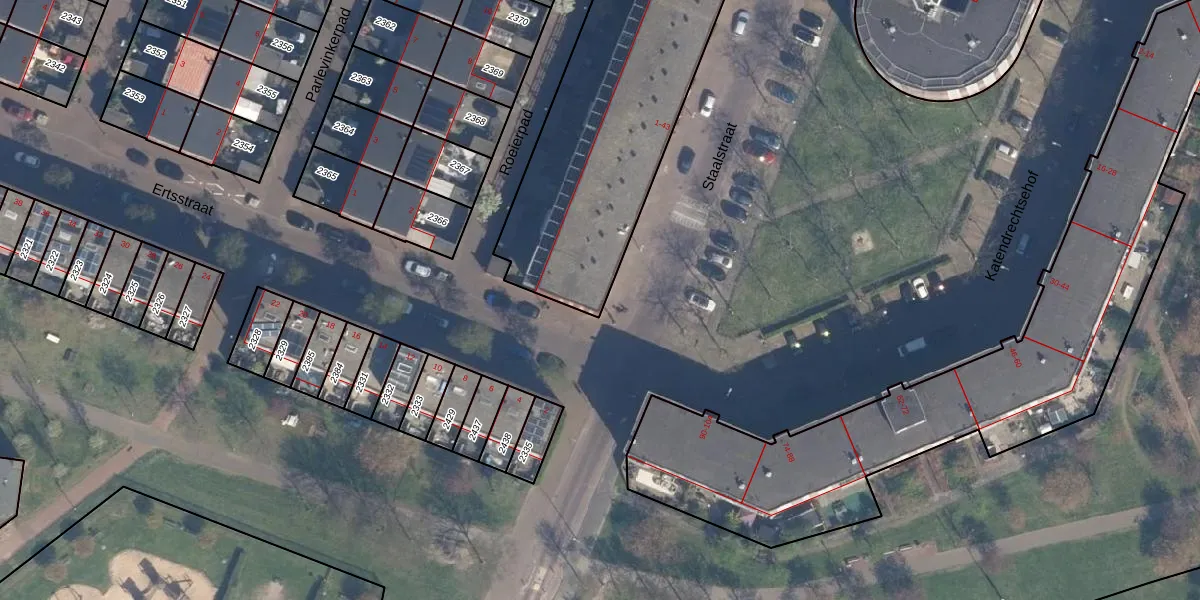 Het perceel waarop Staalstraat 33 staat heeft een oppervlakte van 2310 m². Dit is een zeer groot perceel. De perceeloppervlakte wordt geregistreerd door het Kadaster. Gedetailleerde informatie over de maten van dit perceel kunt u vinden in het rapport Kadastrale kaart met maatvoering van Staalstraat 33.