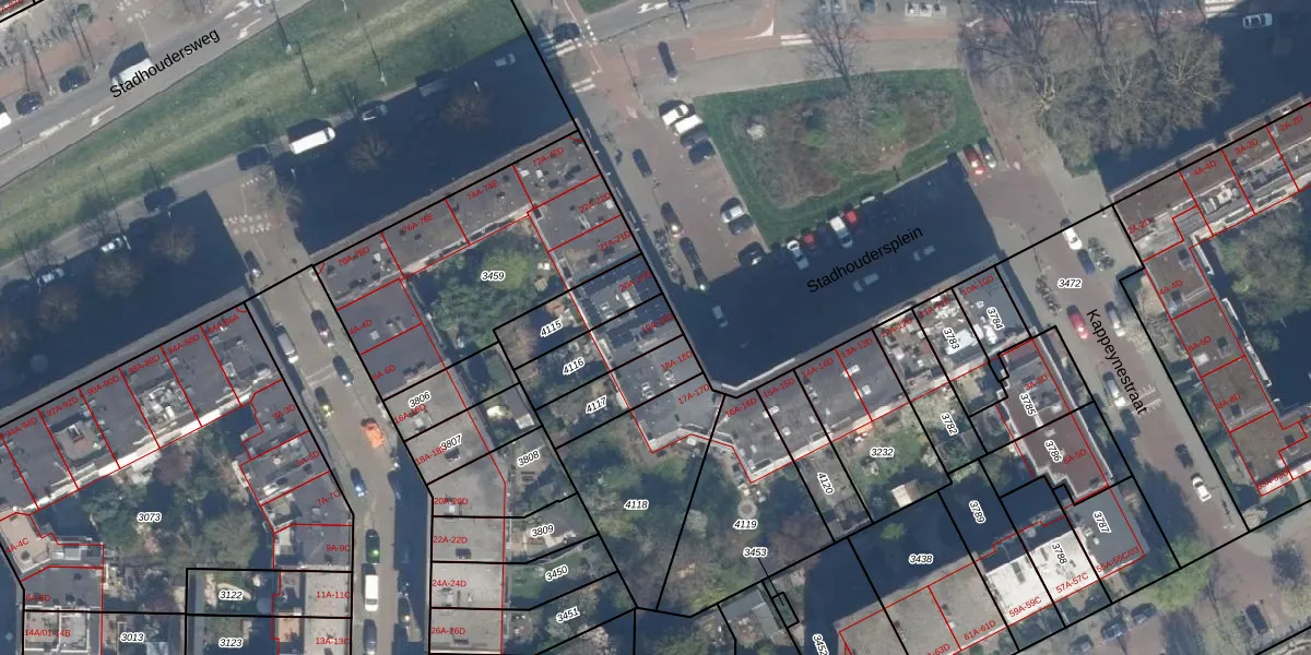 Stadhoudersplein 19-B is gelegen op kadastraal perceel RTD10Z4116. Deze kadastrale aanduiding is uniek en wordt gebruikt door het Kadaster om eigendomsrechten en andere zakelijke rechten vast te leggen. Het perceel maakt onderdeel uit van de kadastrale gemeente Rotterdam.