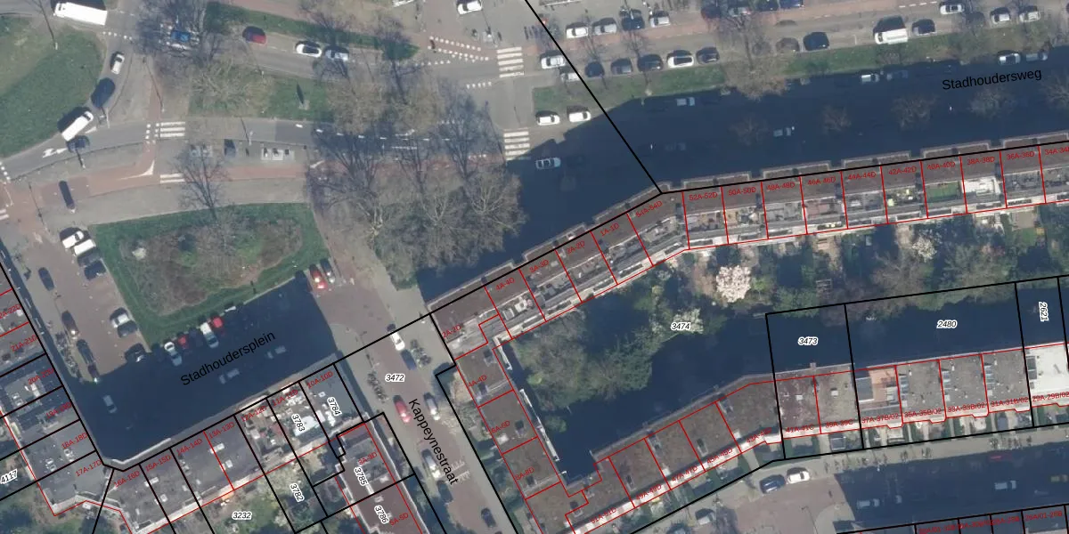 Stadhoudersplein 3-B is gelegen op kadastraal perceel RTD10Z3474. Deze kadastrale aanduiding is uniek en wordt gebruikt door het Kadaster om eigendomsrechten en andere zakelijke rechten vast te leggen. Het perceel maakt onderdeel uit van de kadastrale gemeente Rotterdam.