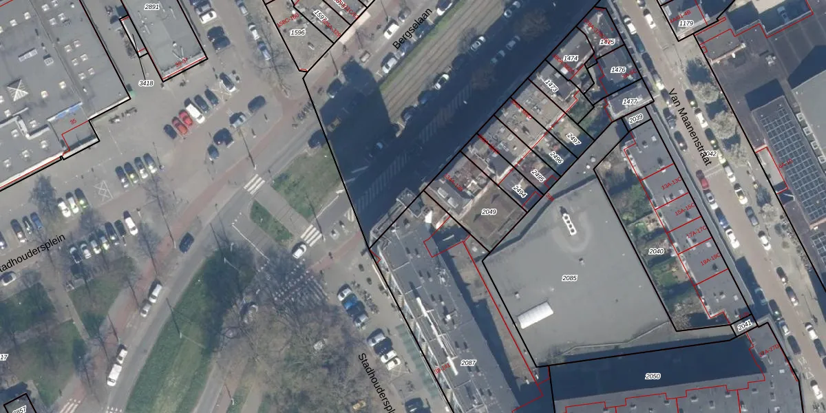Stadhoudersplein 38 is gelegen op kadastraal perceel RTD10AB2087. Deze kadastrale aanduiding is uniek en wordt gebruikt door het Kadaster om eigendomsrechten en andere zakelijke rechten vast te leggen. Het perceel maakt onderdeel uit van de kadastrale gemeente Rotterdam.