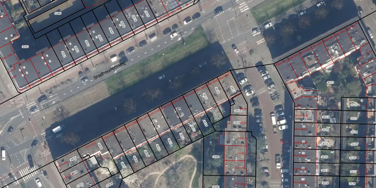 Stadhoudersweg 106-C is gelegen op kadastraal perceel RTD10Z3414. Deze kadastrale aanduiding is uniek en wordt gebruikt door het Kadaster om eigendomsrechten en andere zakelijke rechten vast te leggen. Het perceel maakt onderdeel uit van de kadastrale gemeente Rotterdam.