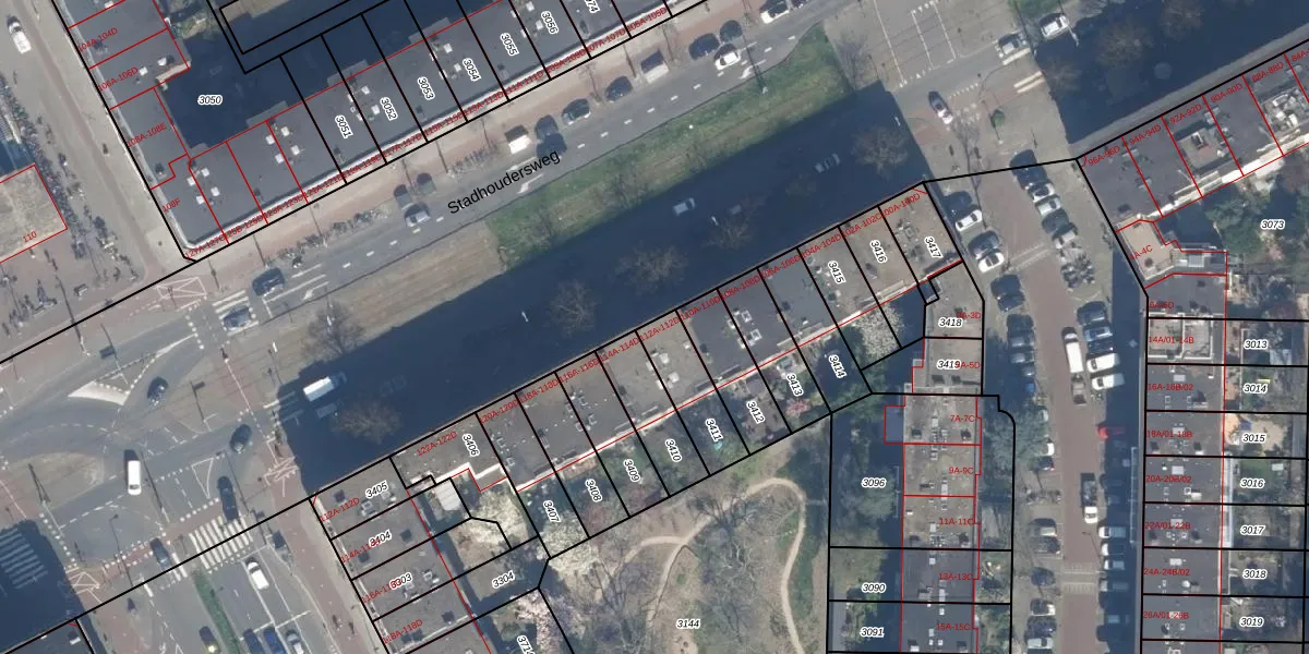 Stadhoudersweg 112-C is gelegen op kadastraal perceel RTD10Z3411. Deze kadastrale aanduiding is uniek en wordt gebruikt door het Kadaster om eigendomsrechten en andere zakelijke rechten vast te leggen. Het perceel maakt onderdeel uit van de kadastrale gemeente Rotterdam.