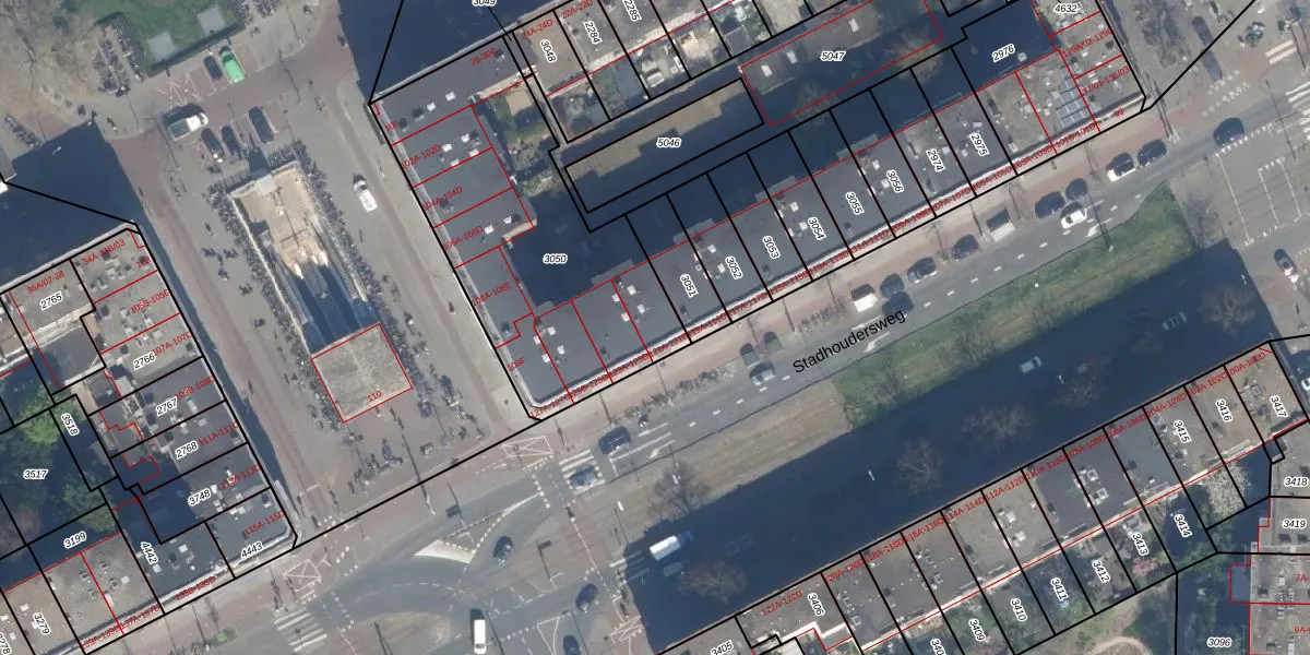 Stadhoudersweg 121-A is gelegen op kadastraal perceel RTD10Z3050. Deze kadastrale aanduiding is uniek en wordt gebruikt door het Kadaster om eigendomsrechten en andere zakelijke rechten vast te leggen. Het perceel maakt onderdeel uit van de kadastrale gemeente Rotterdam.